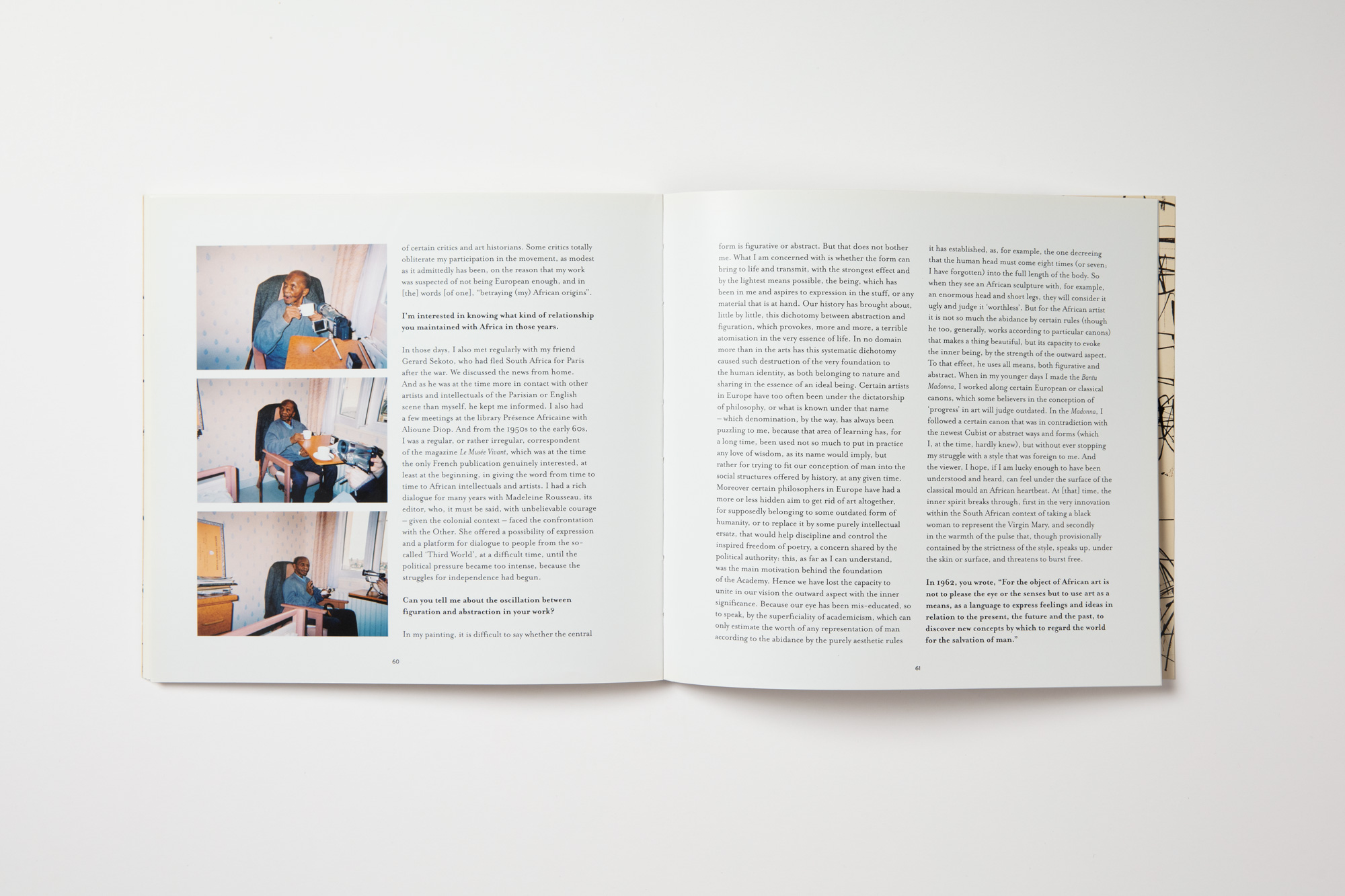 2014, published by Stevenson (SA) / Text: Rasheed Araeen, Hans Ulrich Obrist / 64 pages / Page size: 213 x 200mm / Printed full colour throughout on Magno Matte Satin 170gsm / Binding: thread sewn / Soft cover printed full colour both sides, with Soft Touch matte lamination and foil stamping outside only
