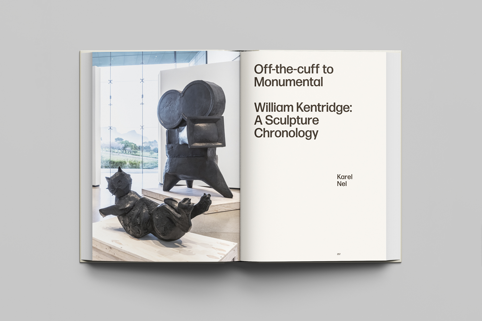 Design and layout of this major monograph to accompany William Kentridge’s sculpture retrospective at Norval Foundation, Cape Town, from 24 August 2019 to 23 March 2020. The book features studio photographs, chapter intro texts by Kentridge, and an extensive catalogue raisonné of his sculptural output from 1984-2019.